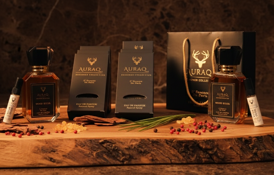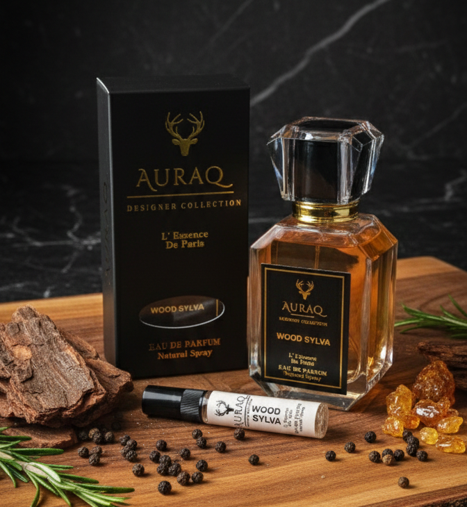 Discover Auraq Wood Sylva, A powerful, deep woody perfume for men by Auraq Designer Collection. Featuring Oud, Cedarwood, and Pink Pepper, Wood Sylva is the ultimate masculine signature. Shop the L’ Essence de Paris collection.